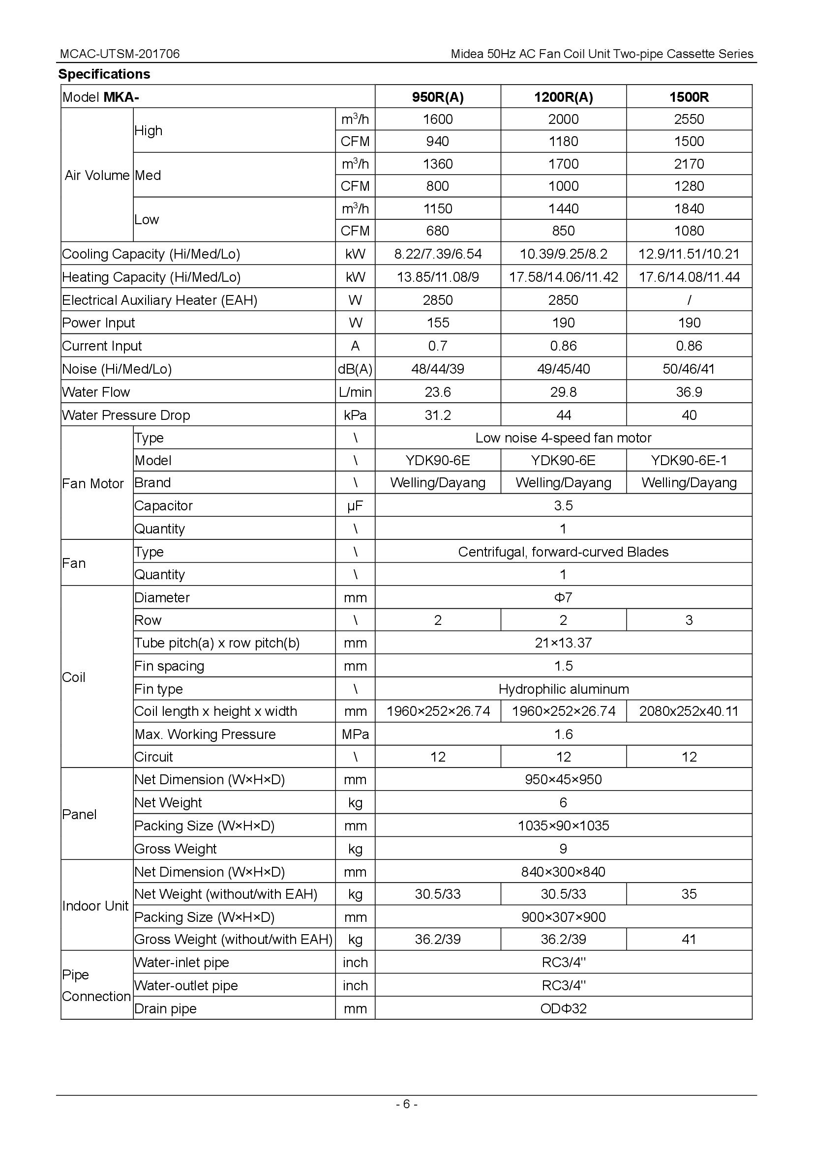 MKA, standardna kasetna jedinica, isporučuje se u pet modela snaga - hlađenje 5.73 - 12.89 kW, grejanje 8.73 - 17.6 kW. Ugradne mere jedinice su 230 mm i 300 mm.