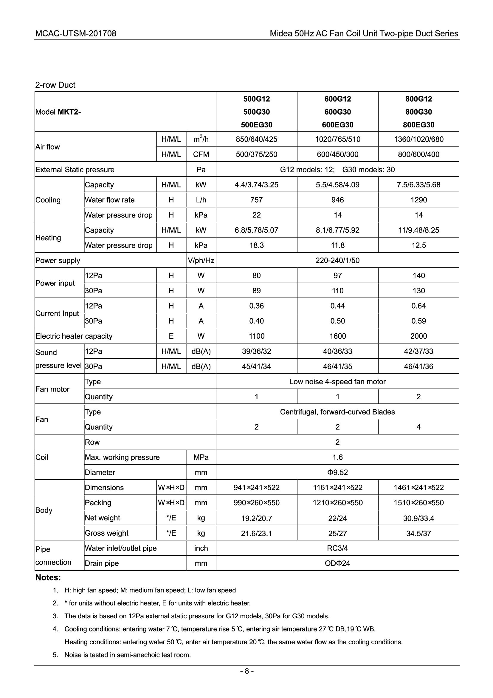 Midea Fan-coil MKG-500-C Zidni