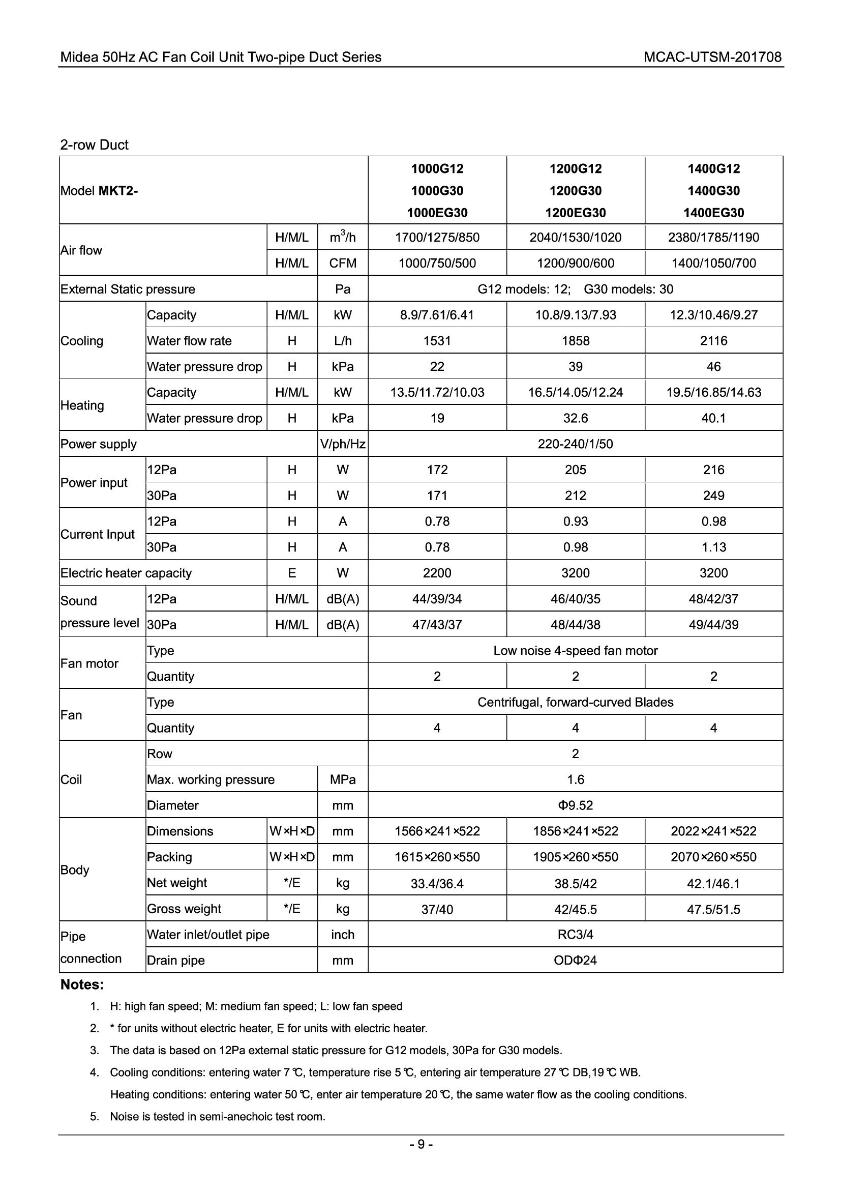 Midea Fan-coil MKG-400-C Zidni