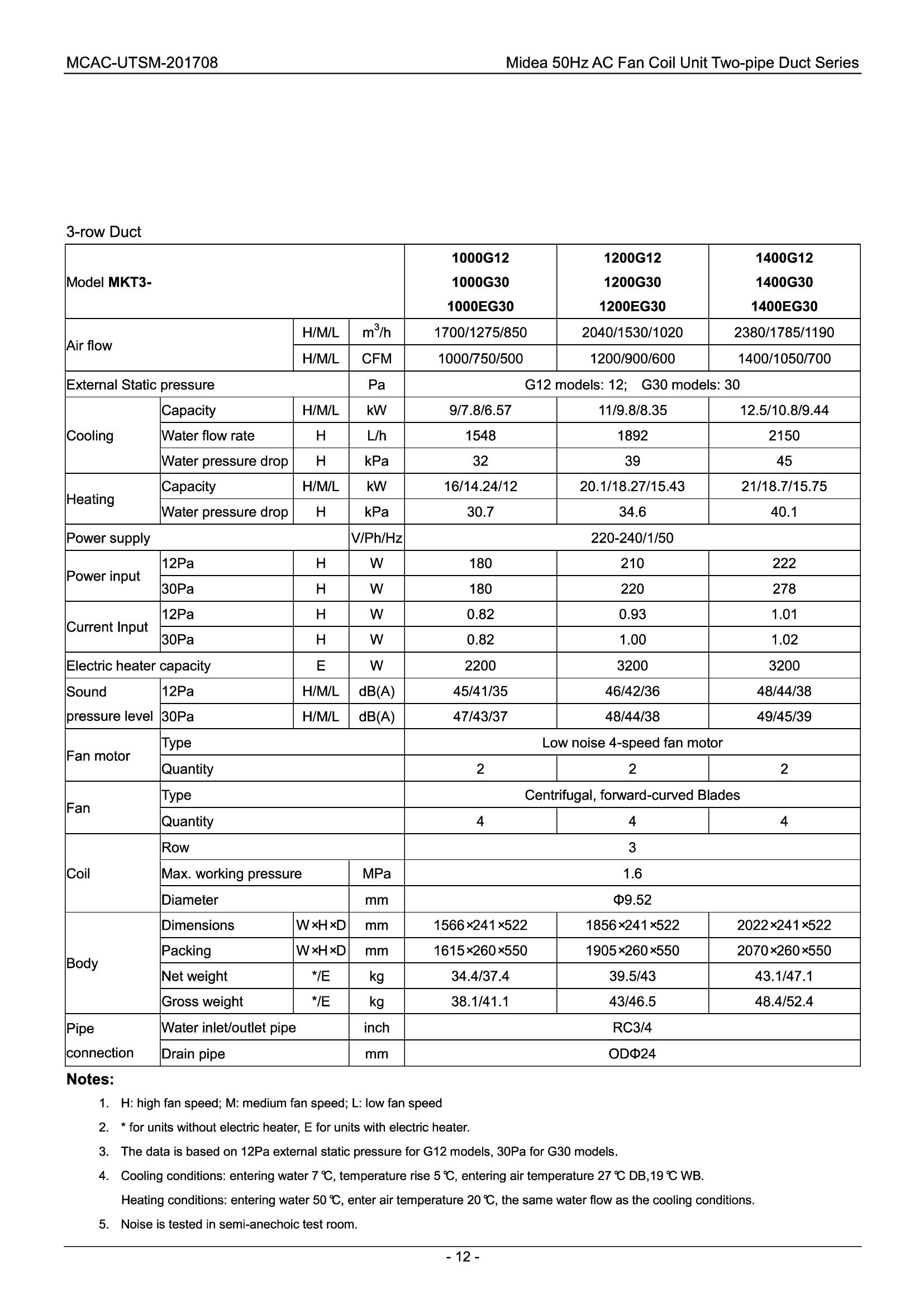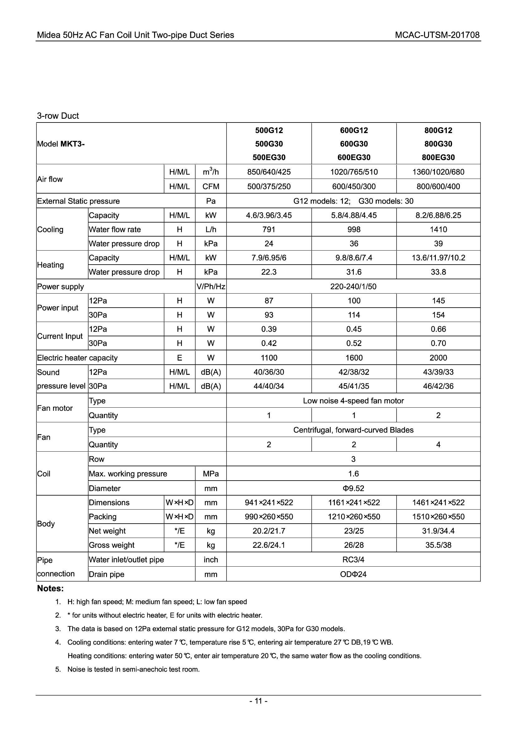 Midea Fan-coil MKG-300-C Zidni
