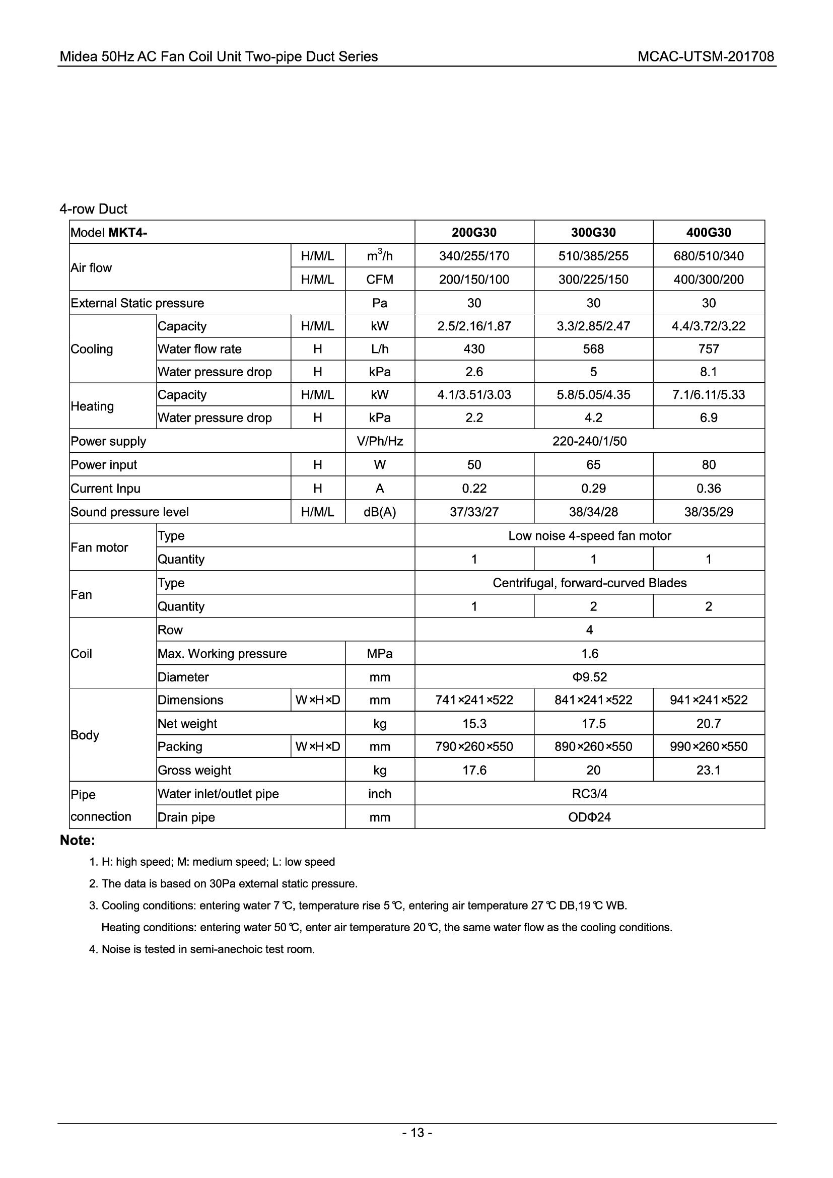 Midea nisko i srednje-pritisni kanalski Fan-coil