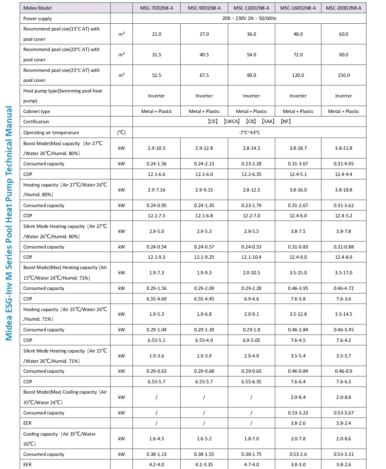 | MSC-200D2N8-A | 3.5-21.8kW, R32 gas, protok vode 8.3m3/h, 230V, 1Ph, 50z |